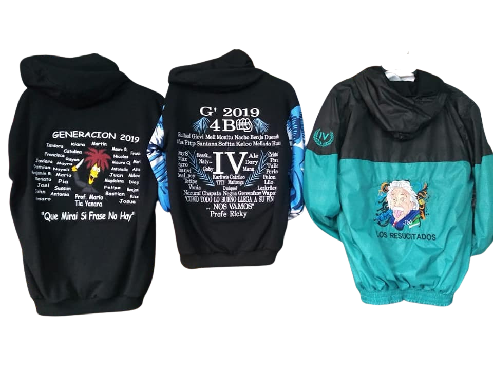 Personalizamos polerones de 4° medio y 8° Basico con diseños a elección, colores y detalles que representen a su generación. Solicita tu cotización y crea el polerón ideal para tu curso.